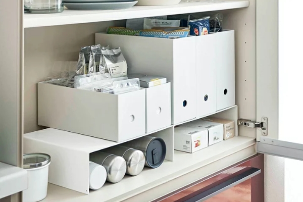 最近の主流は「足元収納(フロアキャビネット)」。以前のキッチンではデッドスペースだった床に近い部分まで収納として活用できます。重い土鍋やストックの飲料も、軽い力で引き出せるレールが標準装備されており、高齢になっても使いやすい「一生モノ」のキッチンになります。